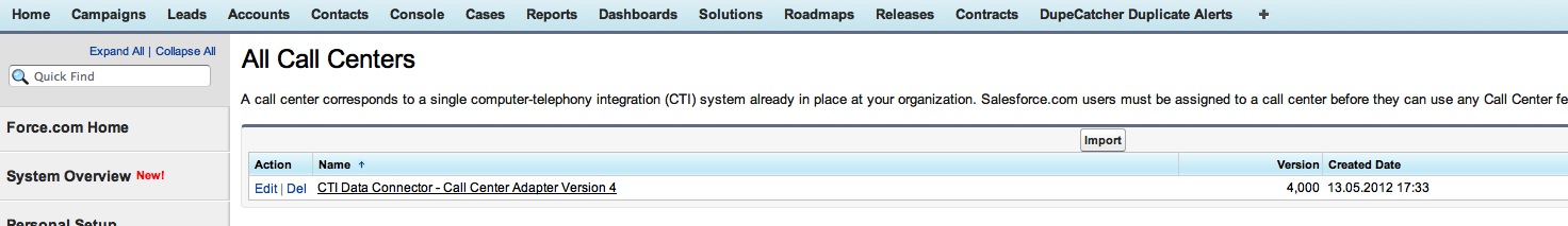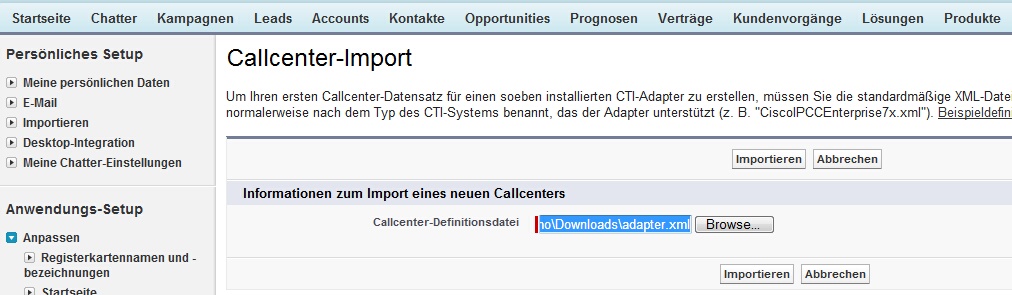Für mehr Informationen über den Salesforce call center adapter suchen Sie in der Salesforce online Hilfe nach: call center adapter Überblick