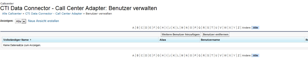 Wird der gewünschte Benutzer nicht aufgeführt, ist er vielleicht einem anderen Call Center Adapter zugeordnet. Sie müssen diesen dann zuerst bei dem anderen Adapter löschen, da ein Benutzer nicht mehreren Adaptern zugeordnet werden kann.
