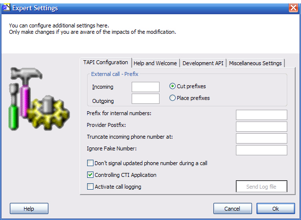 Navigation: Configuration Wizard > Expert Settings > TAPI Configuration |