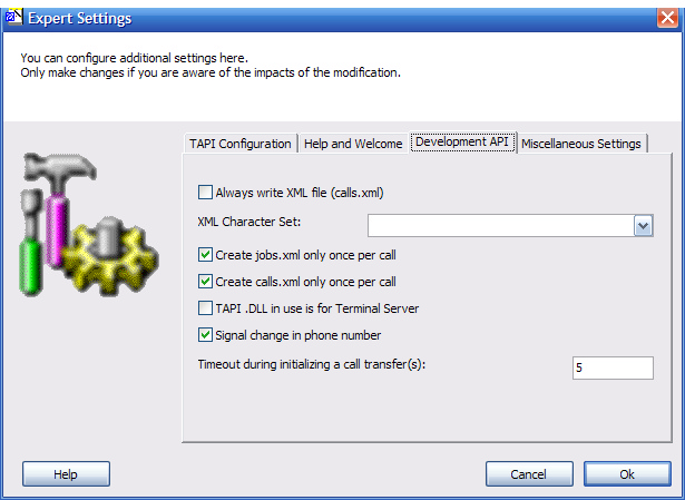 Navigation: Configuration Wizard > Expert Settings > Development API |