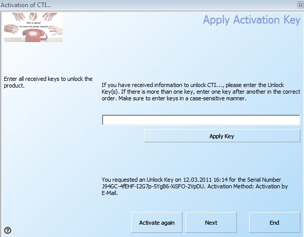The E-Mail Activation needs the Serial Number, company name, your name, country and your e-mail address.