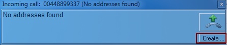 If a caller cannot be identified, you get a button to create a new record. Clicking on Create will create a new Outlook contact.