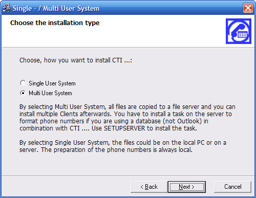 You can select during the installation whether you want to install a Single User or Multi User system. Select Multi User System to for a network installation.