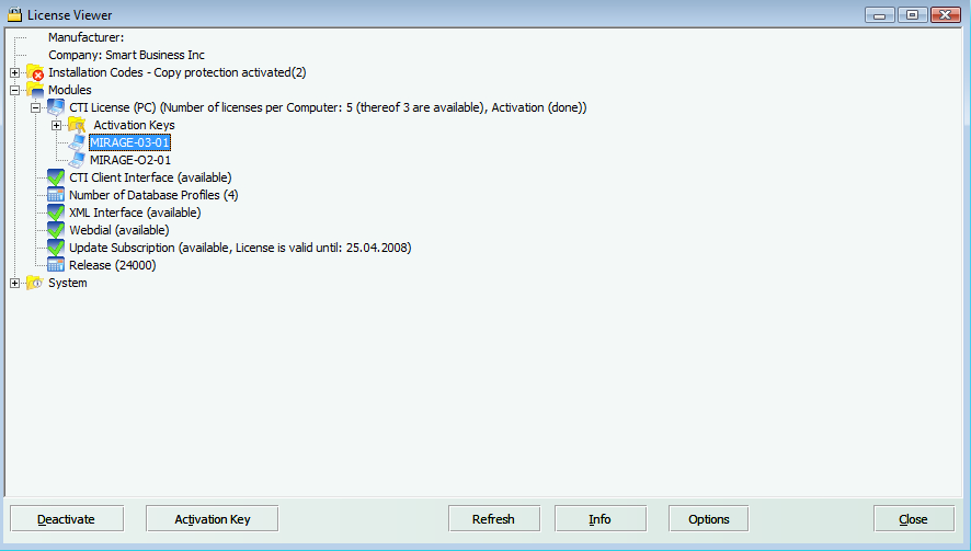 If a PC does not further need the license of CTI Connector, its license can be deactivated. The license can then be used by another PC.