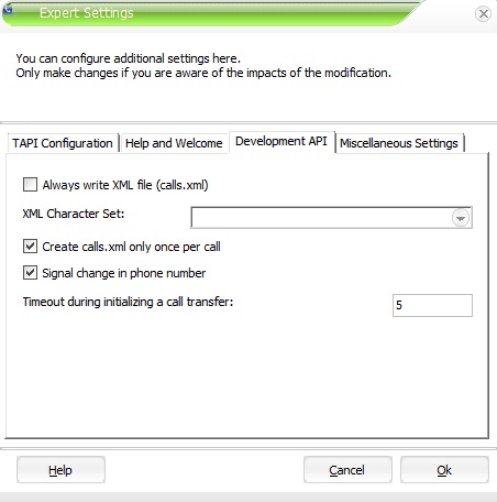 These settings have an impact on the development API using the calls.xml and jobs.xml file to handle phone events.