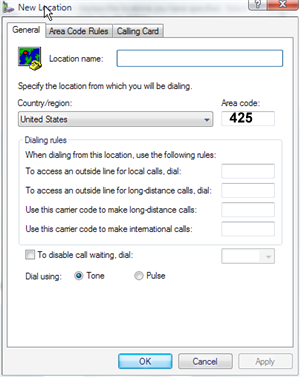Outside US / Canada: Press the button Edit: Select your Country/Region and Area Code without the leading 0 or 1. The fields Outside Line for local calls, long-distance calls, carrier code for long-distance calls and international calls must be empty.