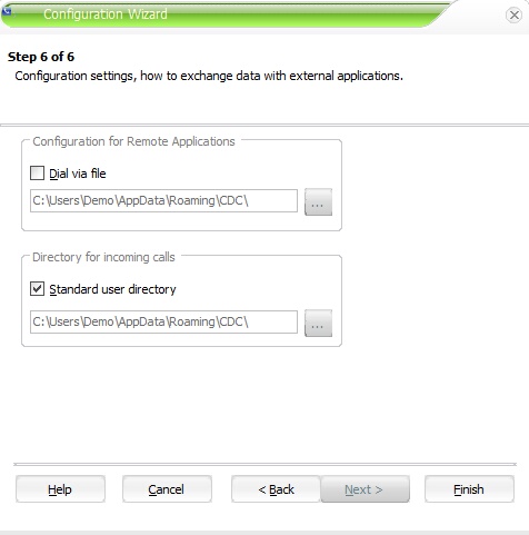 CTI Connector can provide the call information in the file cdccalls.XML for other applications. Normally, this file is created in the user specific directory, but another directory (even on a server) can be defined.