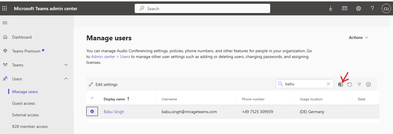5.Wähle im Teams Admin Center die Benutzer aus, für die eine Direct Extension eingerichtet werden soll.