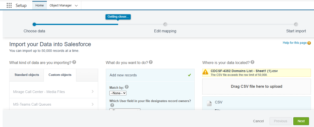 oOr import large domain lists using the import wizard incl. mapping.