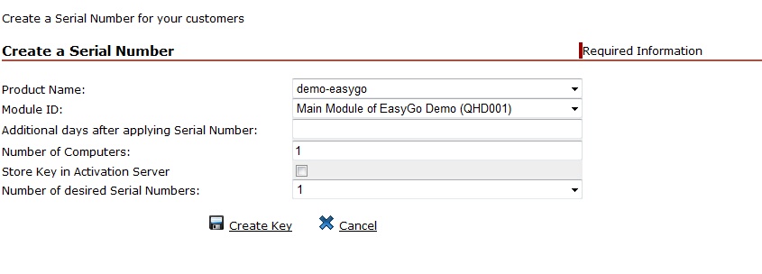 If activation by E-Mail, fax or phone is used, there is a time difference between applying the Serial Number key and sending the Unlock Key. To allow the customer to use the product after applying the Serial Number, add a few days (typically 2-5 days) which are included in the Serial Number.
