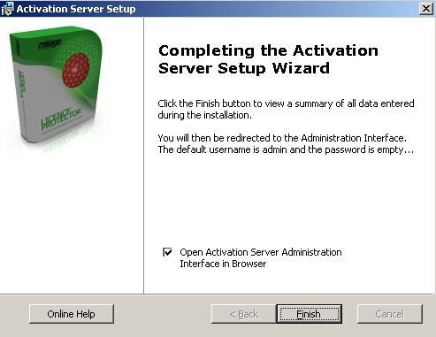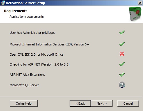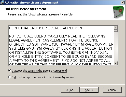 | • | MSI package. It is recommended to use this package because it checks if all necessary system requirements like IIS, ASP.NET are available, creates the database and configures the Activation Server |
