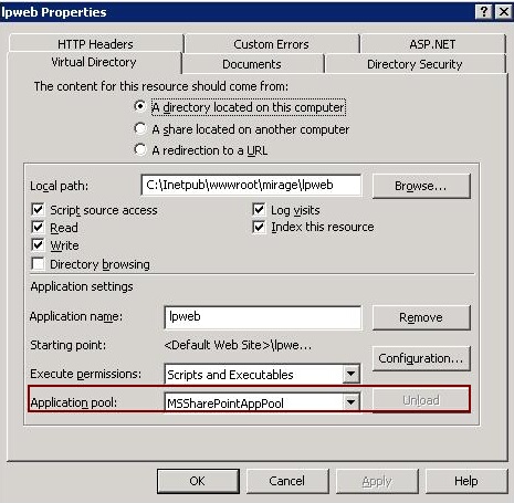The user name is IWAM_Machine Name. These rights should be given to the complete lpweb folder with all subfolders. The same is for the user IUSR_Machine name and user ASP.NET access. If you have a group IIS_WPG, add also full read and write access.