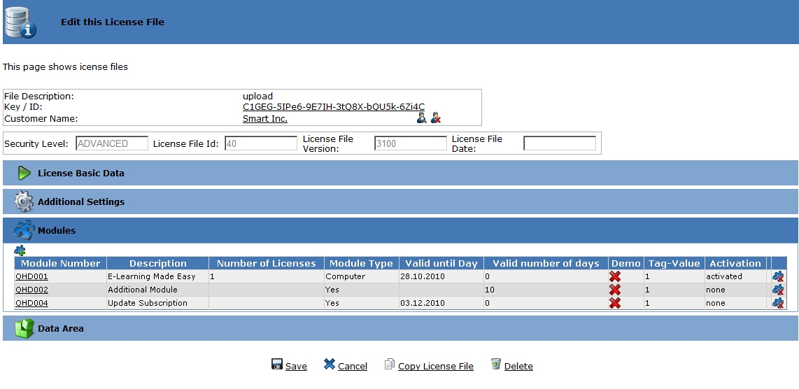 It is possible to modify a complete license file similar like in the Licence Generator. This requires an option in the application to upload and download a license file.