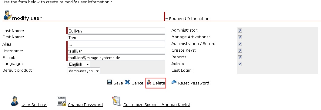Activation Server > Tutorial Activation Server > Administration / Setup > Manage Users: