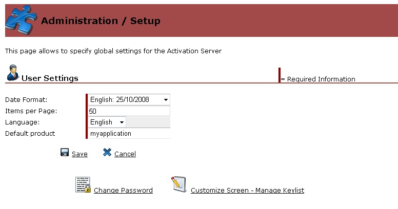 | • | Default product, which should be displayed after login. Leave this empty, if you often work with different products. Only products, which the administrator assigned to the user, are available in the list. |