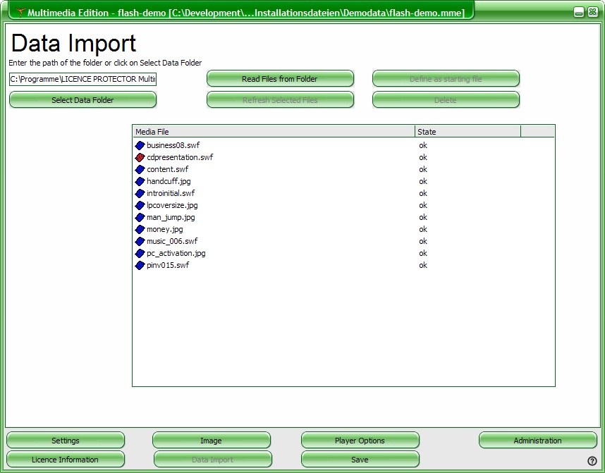 Import your data / content, which has to be secured, into the encrypted data file.