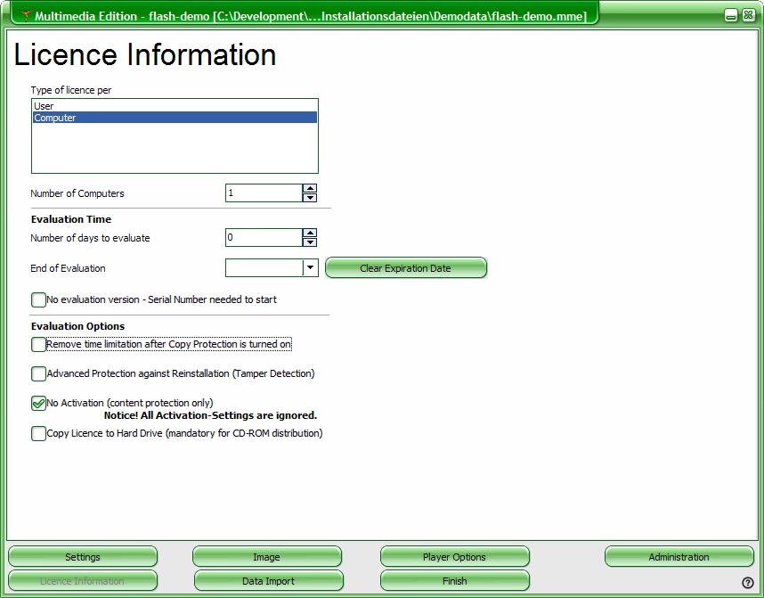 | • | End of Evaluation must be empty (press button Clear Expiration Date) |