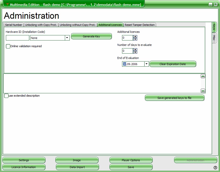 Step 2 - Create an Unlock Key Create an Unlock Key either with or without Copy Protection. You will get 2 keys. Both keys have to be applied. Step 3 - Create an Activation Key with the desired time limitation An additional key is necessary, to set the desired time limitation for the full version either