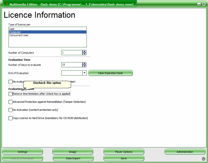 Navigation: Part II - Enhanced Features > How TOs and FAQ > How to make a full version with expiry date / time limitation? |