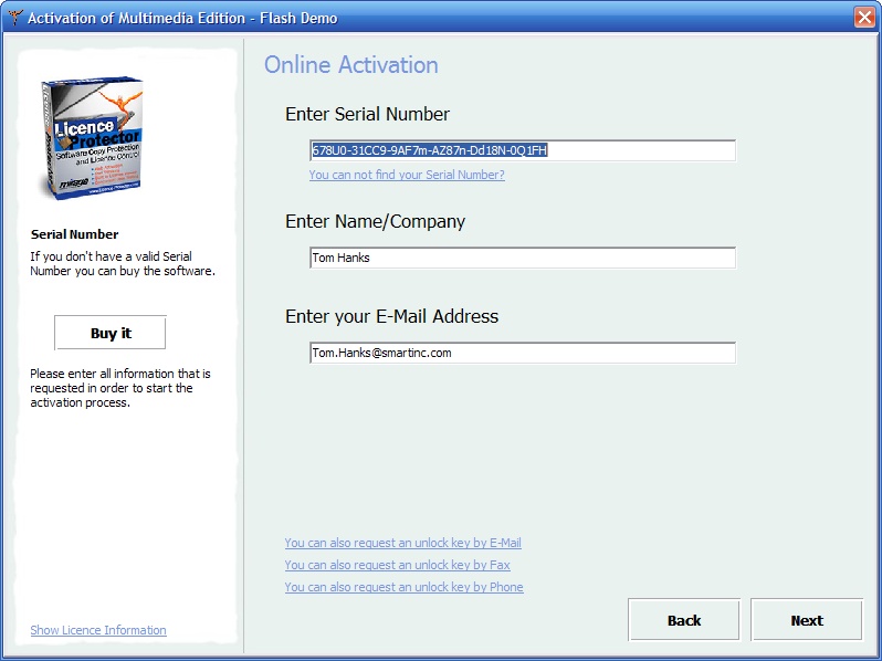 Navigation: Part II - Enhanced Features > License and Registration Screens > Online Activation |