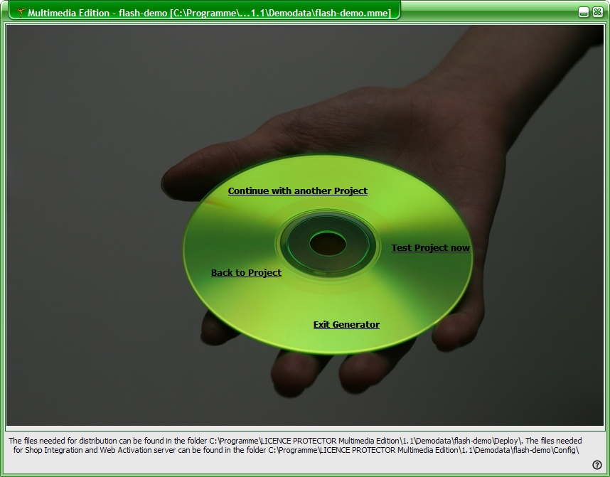 You can not start the Multimedia Player on this folder, because the licence file is modified with each start and can not be used any longer for distribution. If you want to make a life test, copy the complete Deploy folder to another directory.