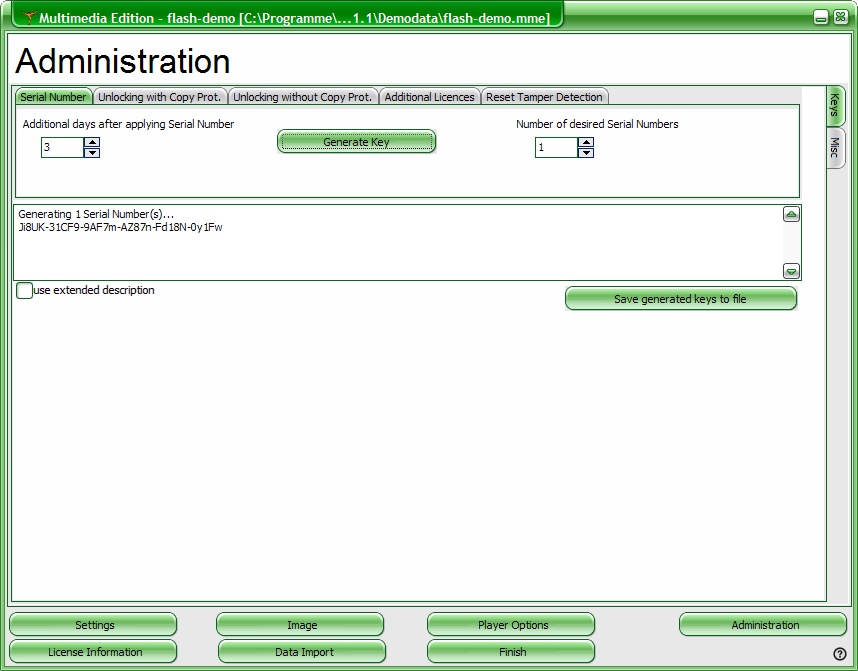 As a proof of purchase, the customer gets a unique Serial Number. This Serial Number is generated within the Administration screen.