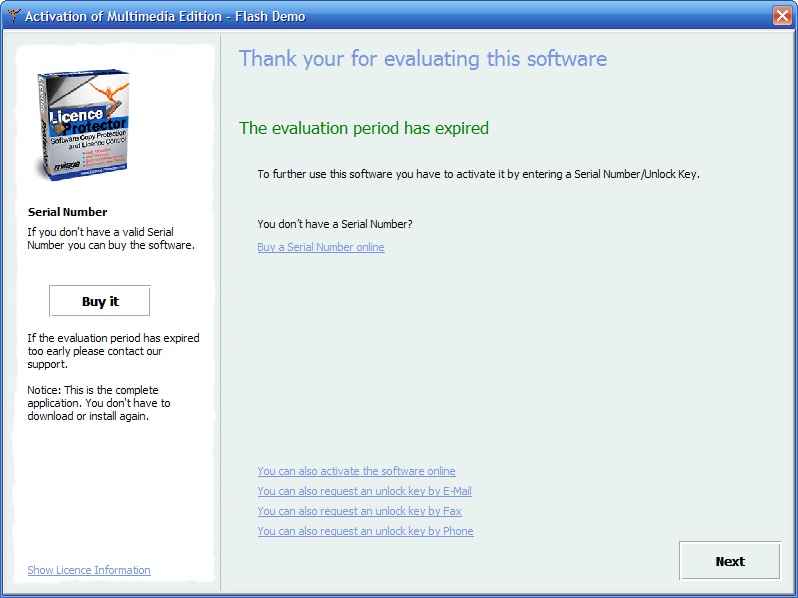 Navigation: Part II - Enhanced Features > License and Registration Screens > Evaluation Period Expired |