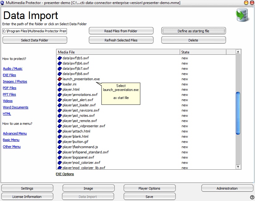 This option uses the Multimedia Player EXE protection. Use it if: