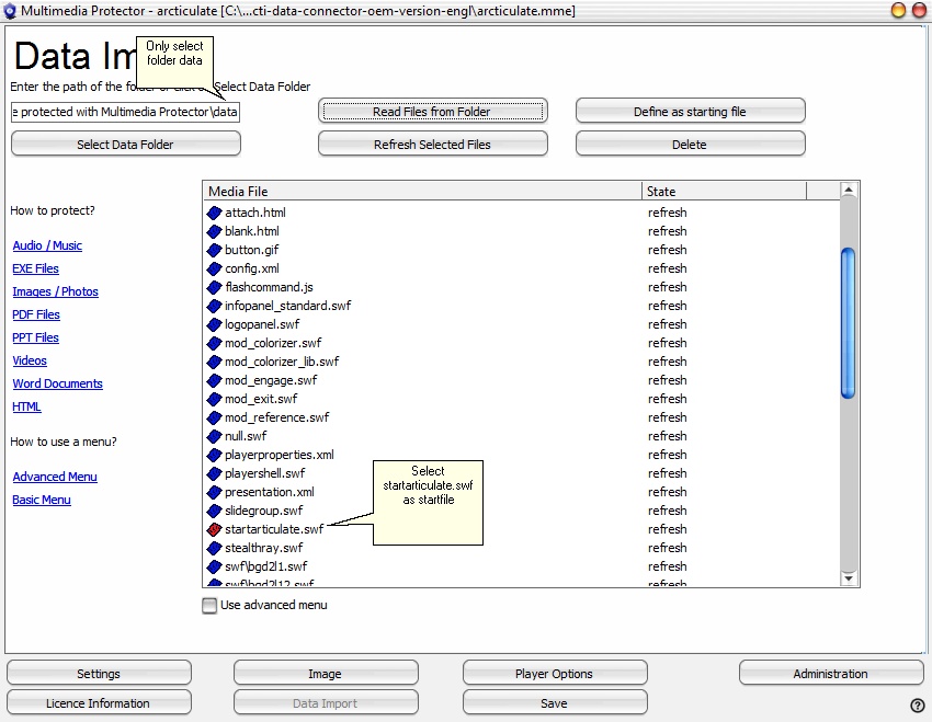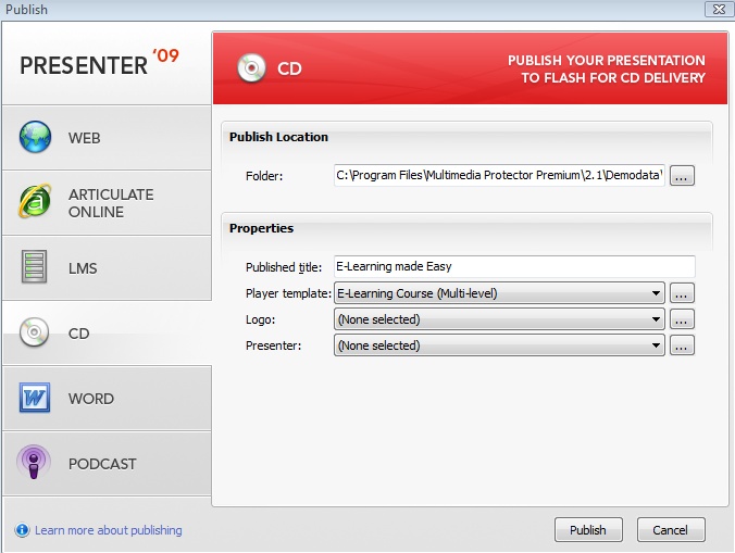 To protect applications created in Articulate Presenter (www.articulate.com) the following steps are necessary.