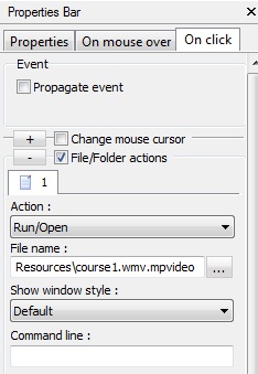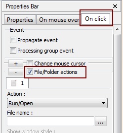 Check the option: File /Folder actions. Select the Action: Run / Open. In the field: File Name select Multimedia Player.exe file from the resources folder. It is the file with the blue shield.