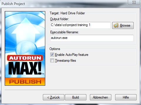 If you make any changes in the Multimedia Protector project, you have to rebuild the CD with Autorun MAX!
