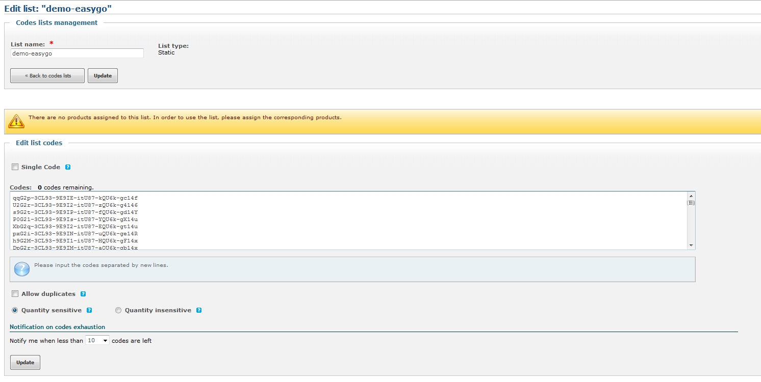 Select the button: Edit. From the key list with Serial Numbers you created - see build a key list with Serial Numbers - copy and paste the keys in the field Code.