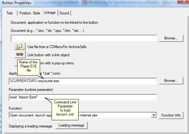 After defining buttons to invoke e.g. lesson 1, lesson 2 you specify in the properties dialog of a button the command, to invoke the invoke the Multimedia Player.exe file.