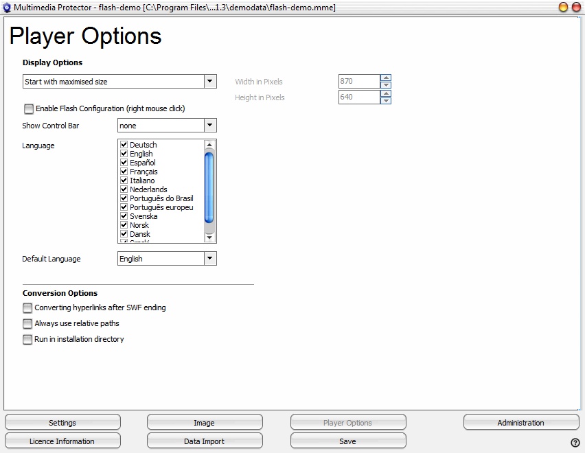 If documents like PDF or PPT are converted and they have links to other PDF or PPT files, Multimedia Player can automatically convert the hyperlinks to .swf extension.