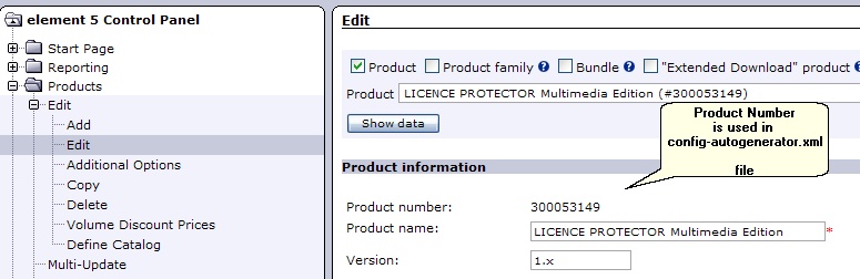 The file uploaded to Element5 / Share-it! must always have the name config-autogenerator.xml. If you have multiple products, you can add any number of product definitions to this file. Use an XML Editor to copy and paste the configuration settings from all projects into one single file config-autogenerator.xml.