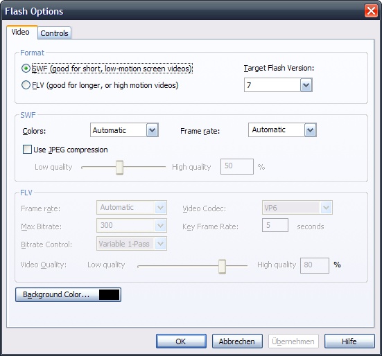 Select Flash/FLV - Adobe Flash output