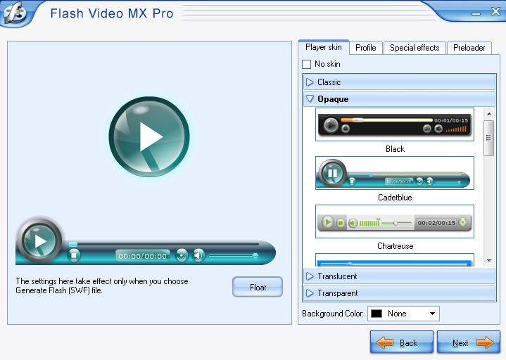 Then select a Player control (toolbar which allows to start, stop, pause, rewind). This is mandatory because Multimedia Protector does not provide an player toolbar. You can select a design and a lot of other player settings.