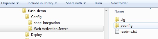 On your local PC, select the project folder. It includes 2 sub folders (config and deploy). Select the config folder and then the folder Web Activation Server.