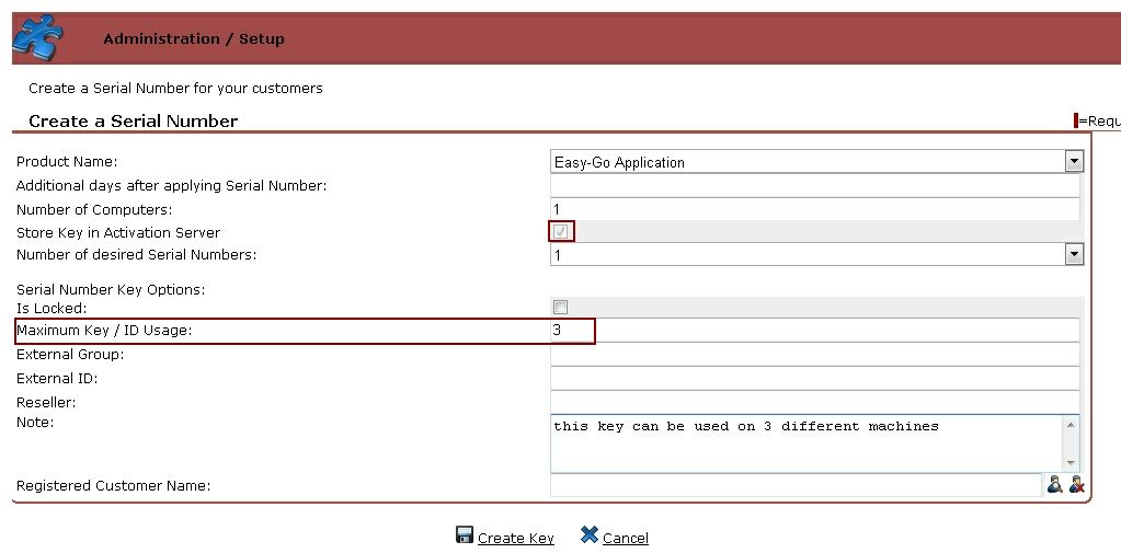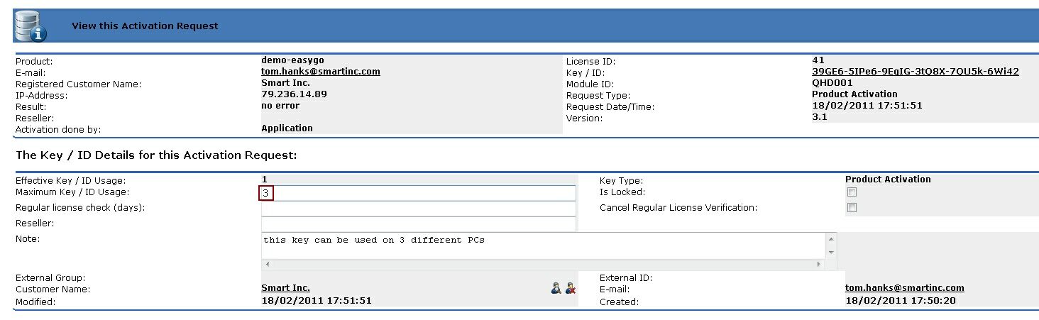 Select: Add a Key on the Activation Server , add the key and define the maximum Key / ID usage