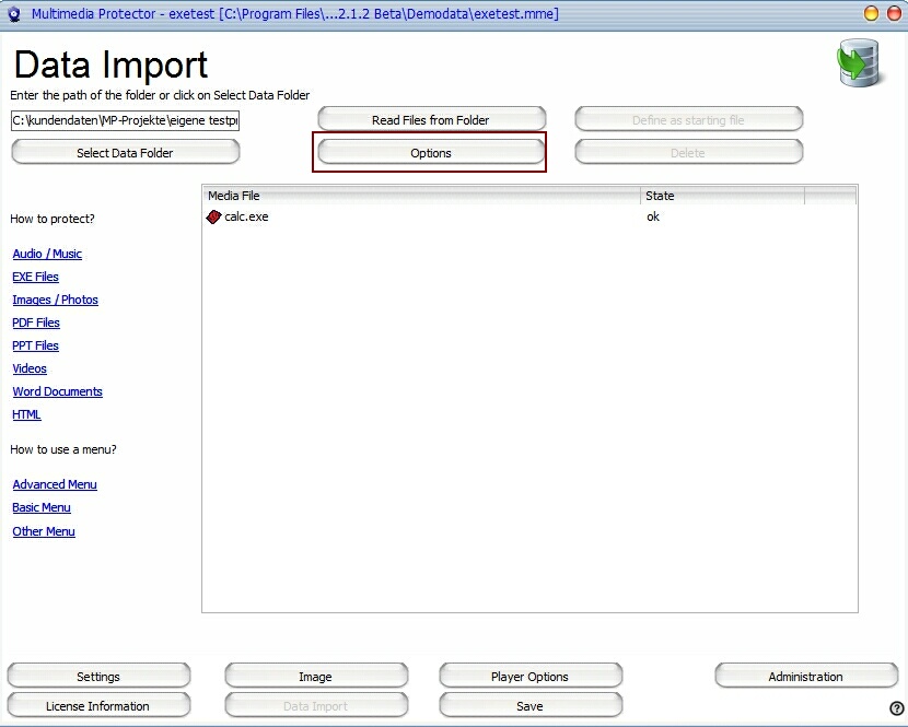 Multimedia Protector supports copy protection and complete licensing for stand-alone EXE files including files on folders. It wraps the EXE file and additional files into the encrypted database. It is a very strong protection, as the files are completely hidden from decompilers.