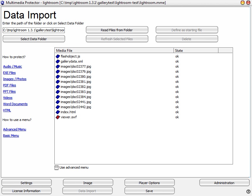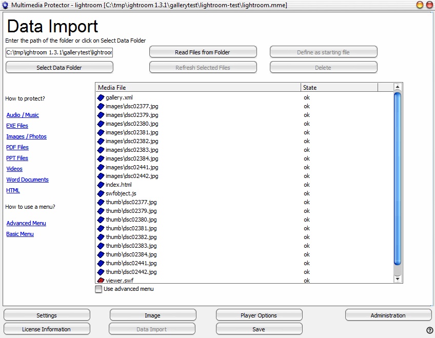 For protecting files with Adobe Photoshop Lightroom (http://www.adobe.com/products/photoshoplightroom/) the following steps are necessary.