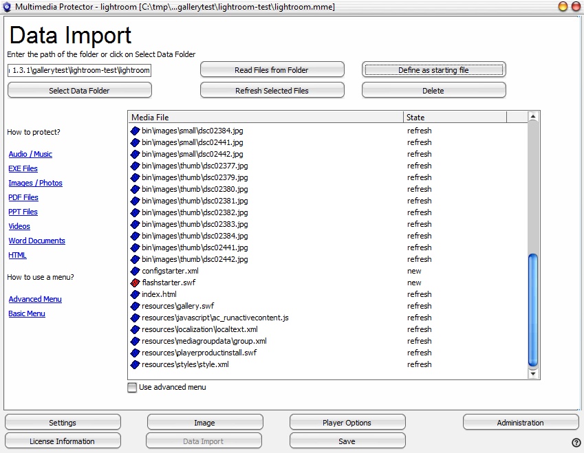 •Import ALL files (swf, html, js..) and make flashstarter.swf the start file