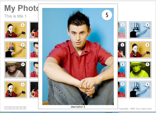 This is a photo album which allows placing a lot photos on one page including thumbnail and big size photo as well as a short description per photo.