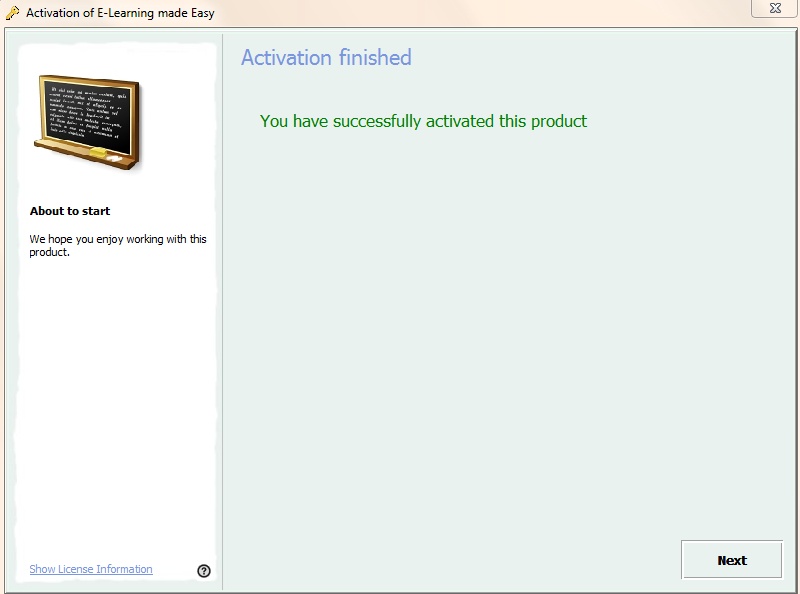 After Online Activation or successfully entering an Unlock key, this screen will appear to indicate that the activation process is finished. The next start of the Multimedia Player will display a screen only in case of an error.