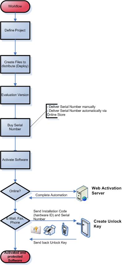 •Online Activation – the Serial Number is transferred to the Web Activation Server; this process validates whether the Serial Number was already used and enables copy protection, deletes the time limitation (to get an unlimited full version). The customer can work instantly with the application. A reinstallation on the same PC that is already registered is accepted
