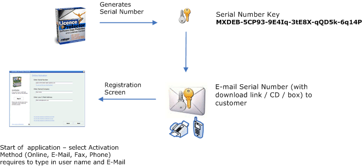If an Online Shop is used, the Serial Number Key can be generated automatically after the order process.