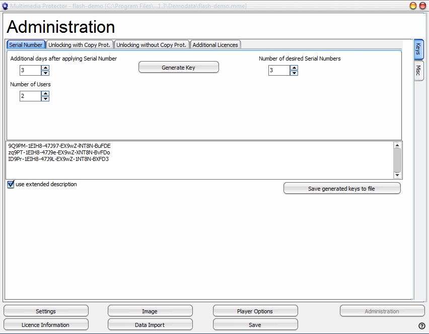 As a proof of purchase, the customer gets a unique Serial Number. This Serial Number is generated within the Administration screen.