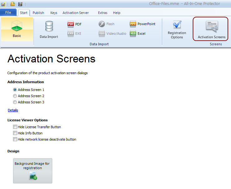 Select between 3 different screens to collect address information during the product activation.