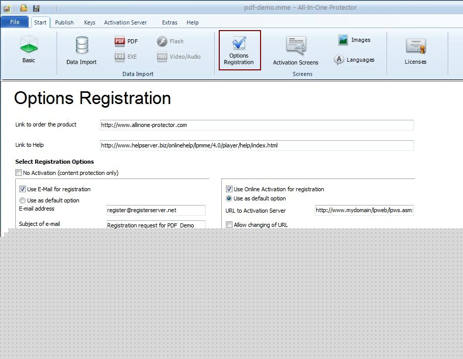 Default: http://www.helpserver.biz/onlinehelp/lpmme/5.0/player/help/index.html . This offers a generic help for the registration process including a Video Tutorial. You can alternatively use your own online help.