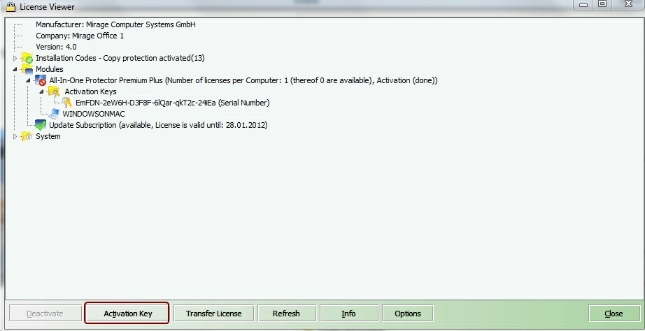 If you got an Activation Key via e-mail or fax, you can enter the key within the screen Administration, TAB Misc, Show License Information.